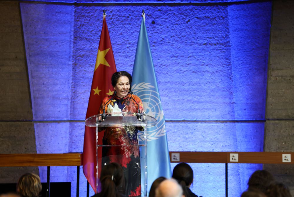 3月18日,在法国巴黎,联合国教科文组织社会人文科学代理助理总干事利迪娅·布里托在活动上致辞。新华社记者 邬惠我 摄