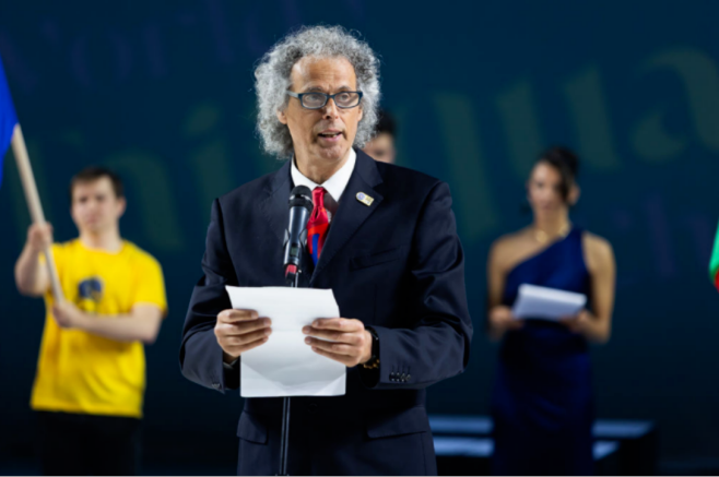 国际武术联合会副主席帕特里克·范本浩先生首先致辞。他向远道而来的运动员、随队官员、裁判员和嘉宾表示热烈欢迎,并高度评价了太极拳在全球范围内的蓬勃发展。范本浩先生指出,太极拳是连接世界人民的健康纽带与友谊桥梁。他深情地说道:“如今,全球数以亿计的太极拳习练者已不仅仅是一个群体,我们更是一个全球大家庭——因共同追求健康、内心平和与相互尊重而团结在一起。他祝愿所有运动员赛出风格、赛出水平,并在布尔加斯留下美好而难忘的回忆。”