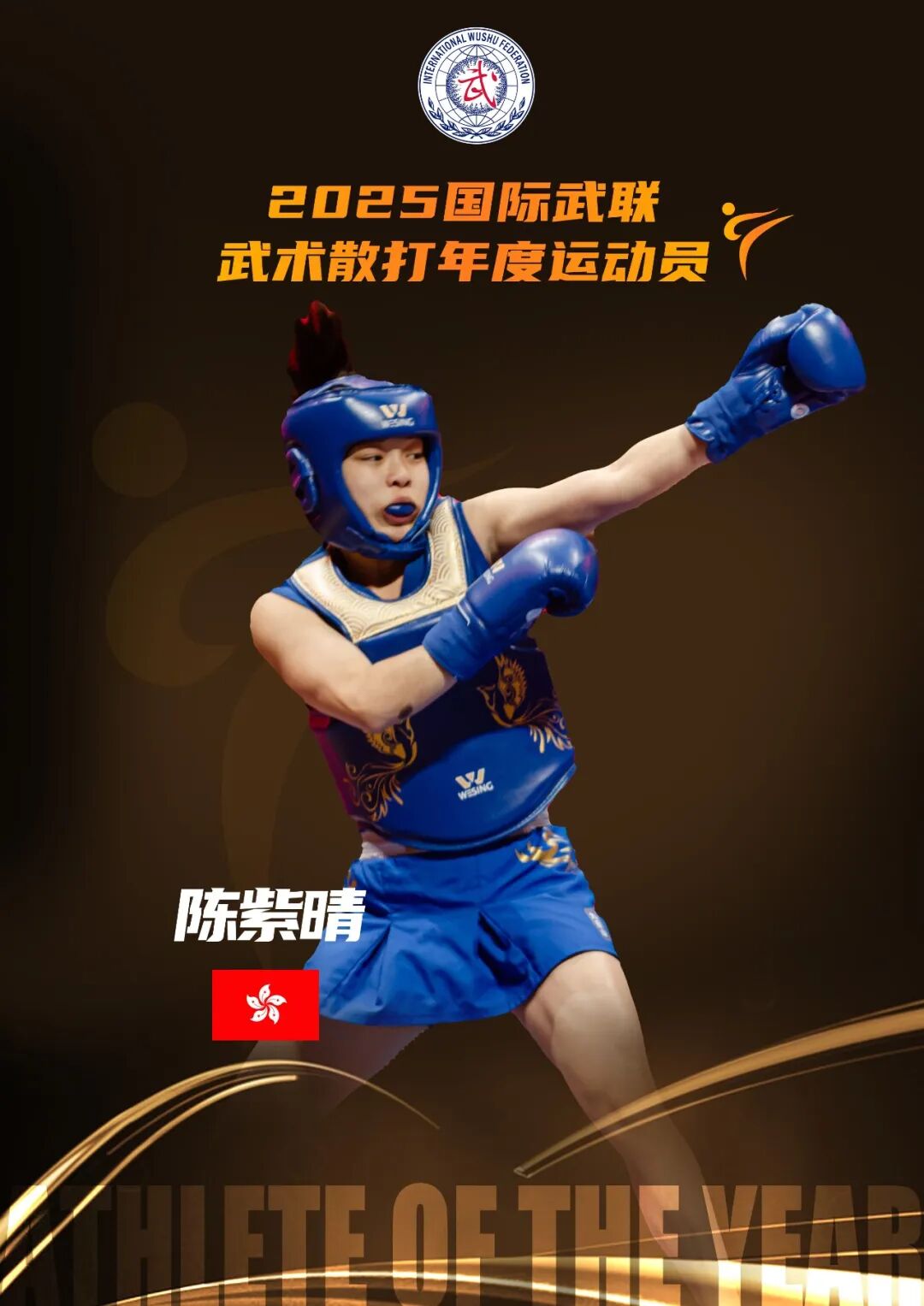 陈紫晴6岁习武,14岁时成为奖学金运动员。她曾在亚洲青少年武术锦标赛、亚洲武术锦标赛、武术散打亚洲杯、世界武术锦标赛和武术散打世界杯中屡获奖牌。2025年,她在第十届武术散打世界杯56公斤级比赛中获铜牌,并在第十七届世界武术锦标赛上再添一枚铜牌。作为一名兼具天赋和体育精神的运动员,她持续为推动香港武术散打运动发展贡献力量。