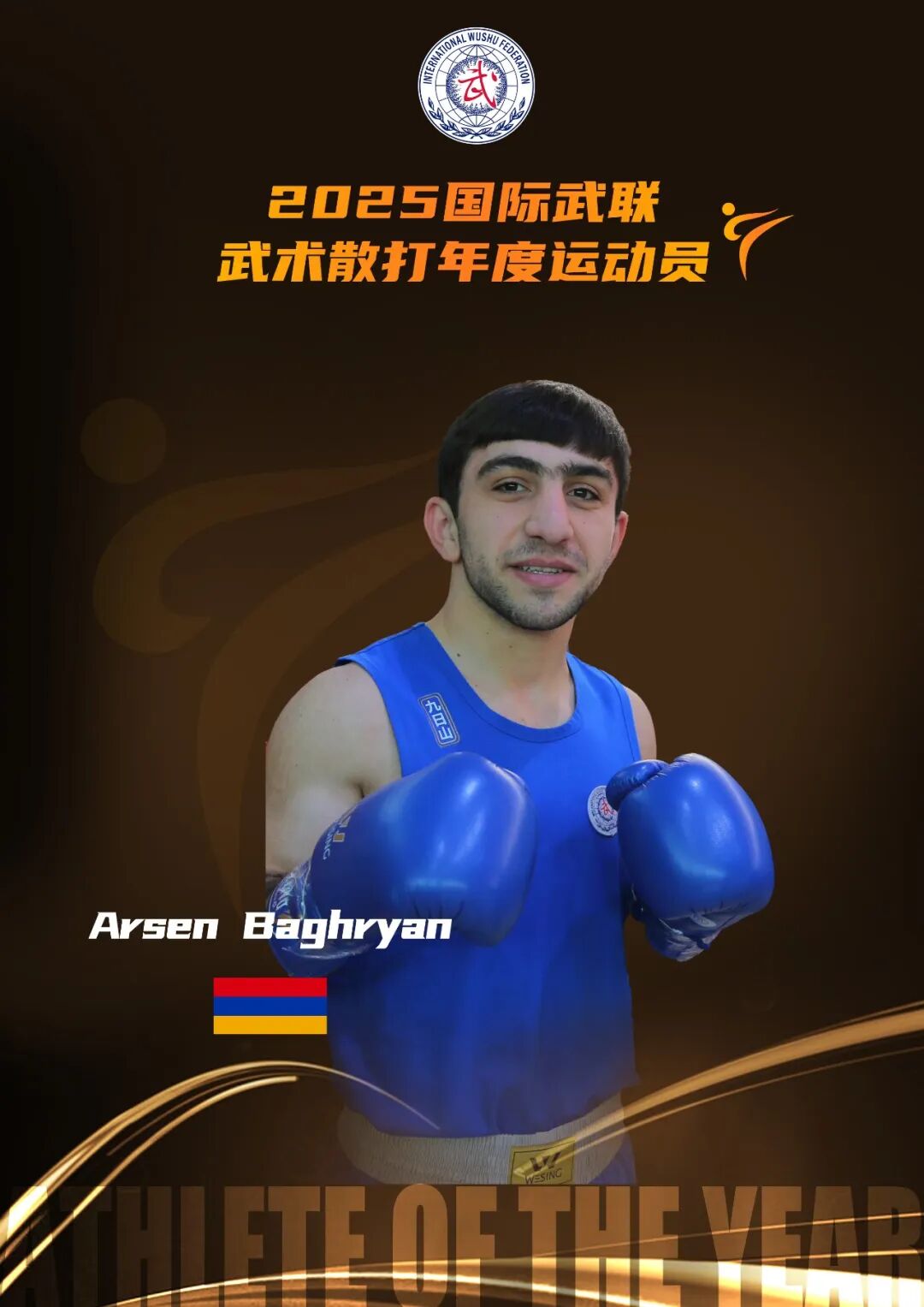 阿尔森·巴格里扬被认为是亚美尼亚最优秀的运动员之一,兼具卓越体能与高尚品德。他自幼接受训练,曾获得亚美尼亚全国冠军及多项国内外赛事奖项。他在本国备受尊敬,在国际赛场上也赢得广泛认可。2025年,他在第十七届世界武术锦标赛武术散打项目中夺得银牌。
