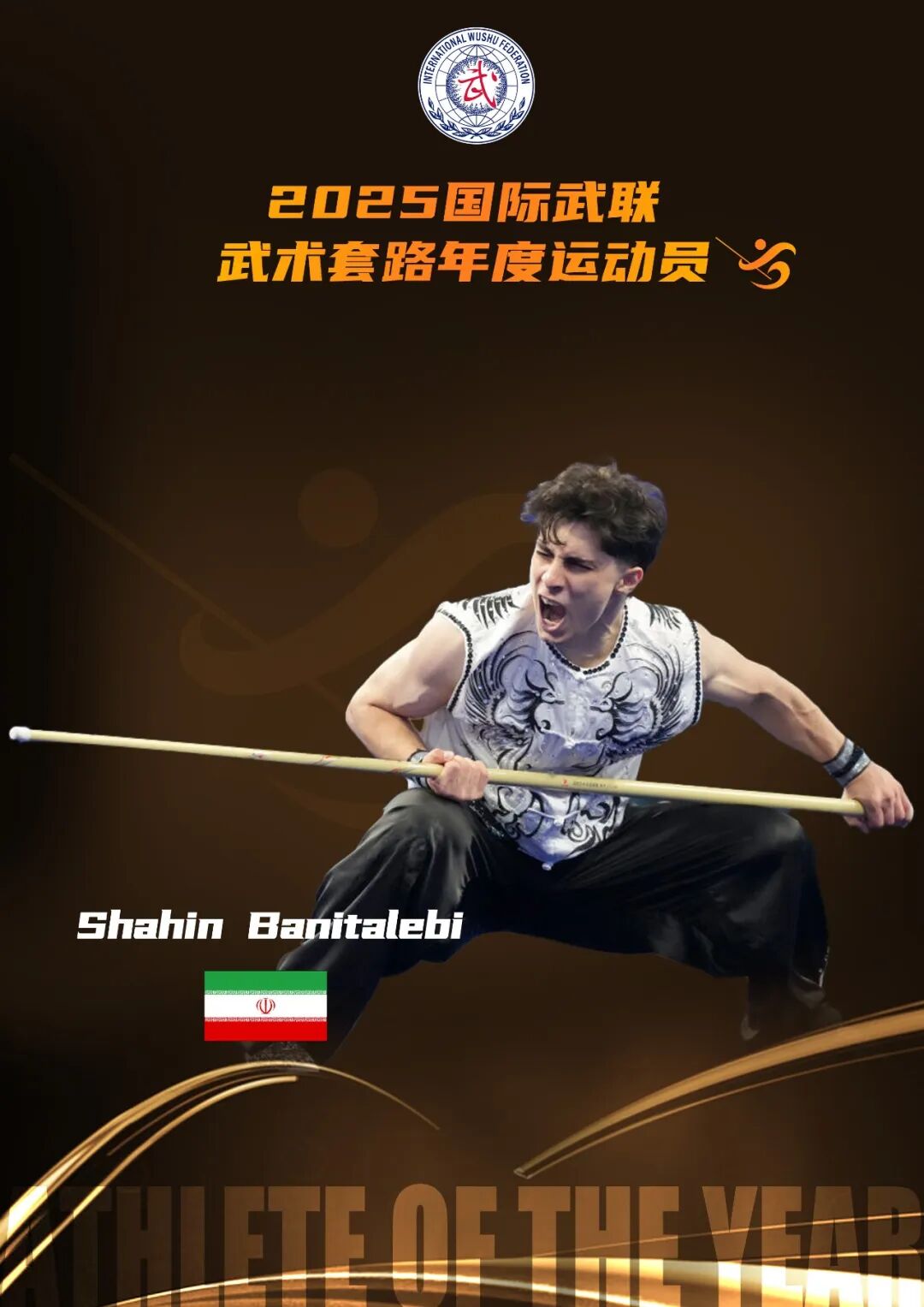 沙欣·巴尼塔莱比自2013年起入选伊朗国家武术队。他在第十七届世界武术锦标赛中斩获南刀铜牌,在2025年世界运动会上夺得南拳-南棍全能金牌。他屡获亚洲与世界级赛事奖牌,以稳定出色的赛场表现证明了其出众的竞技实力。他的职业素养、自律精神和训练热情,也成为年轻运动员的榜样,并在国际舞台上成为伊朗武协的优秀代表。