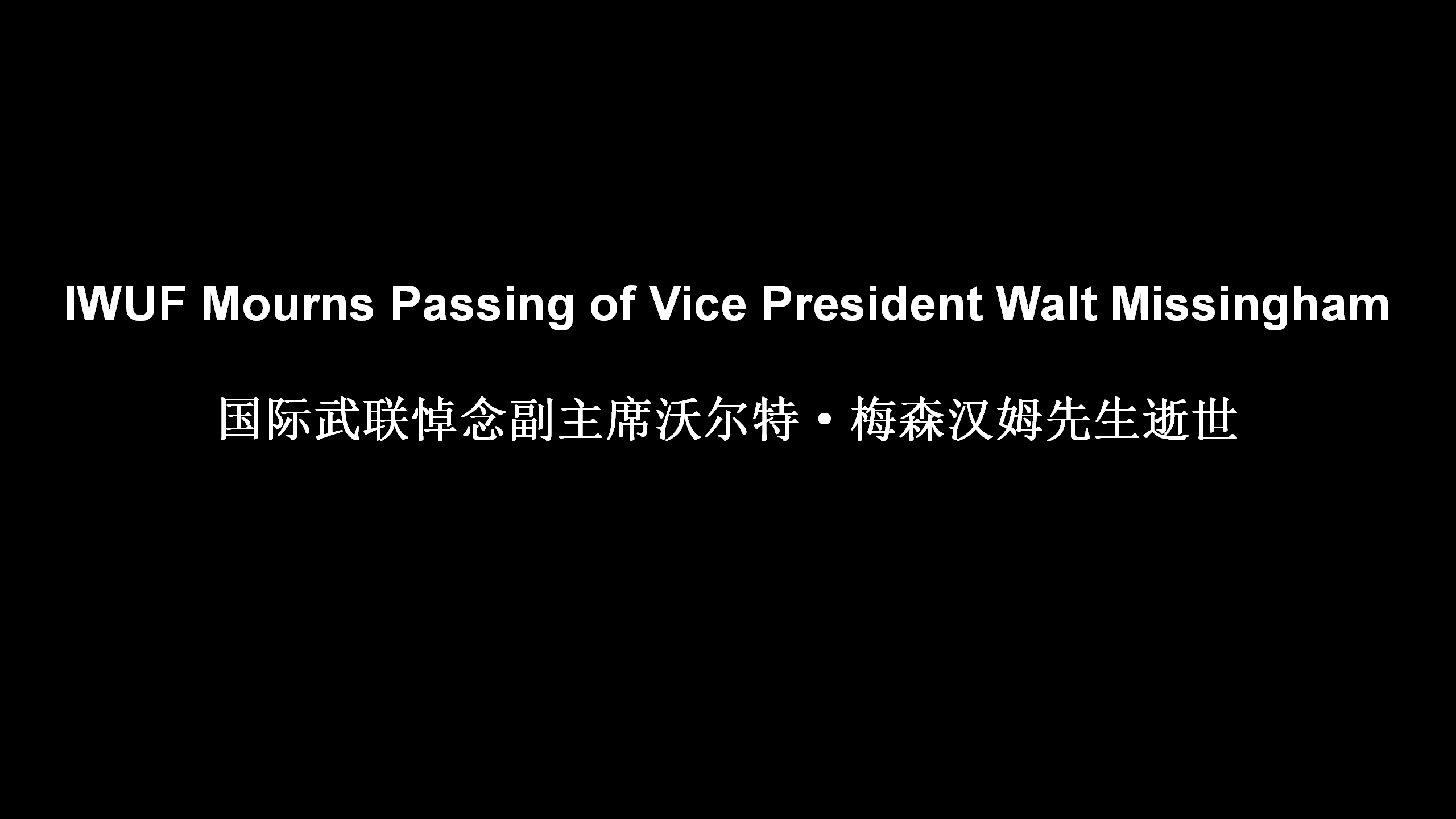 IWUF and the global wushu family extends its deepest condolences to Walt Missingham’s family and loved ones.