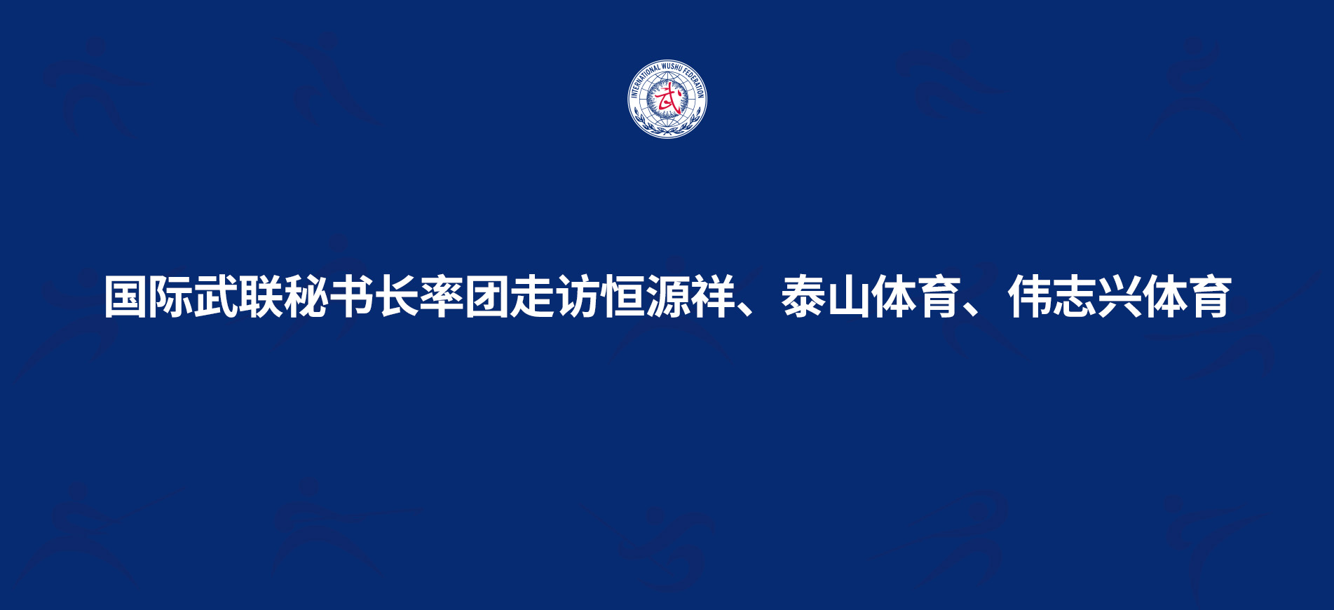 近日,国际武术联合会张玉萍秘书长率团对合作伙伴恒源祥集团、供应商山东泰山体育器材有限公司、福建伟志兴体育用品有限公司进行工作访问。此次走访旨在深化战略合作,共同推动国际武术事业高质量发展。