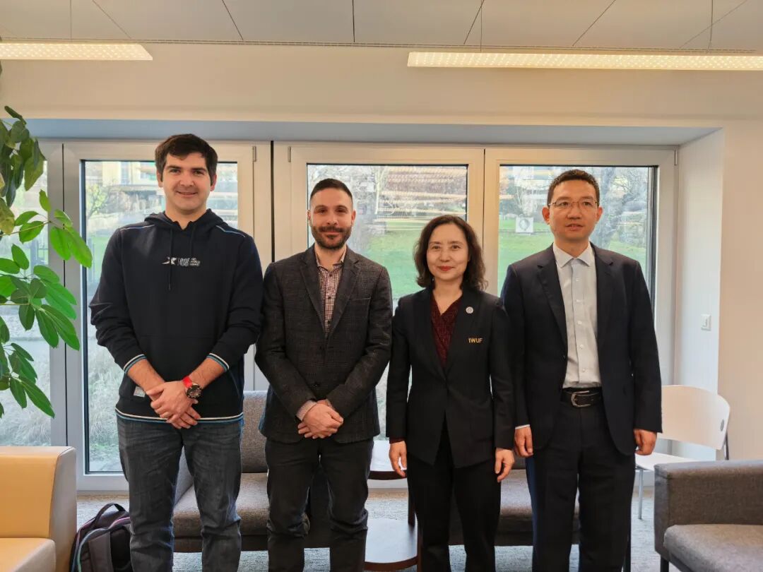 国际武联张玉萍秘书长(右二)会见国际世运协副首席执行官纪绕姆(左二)