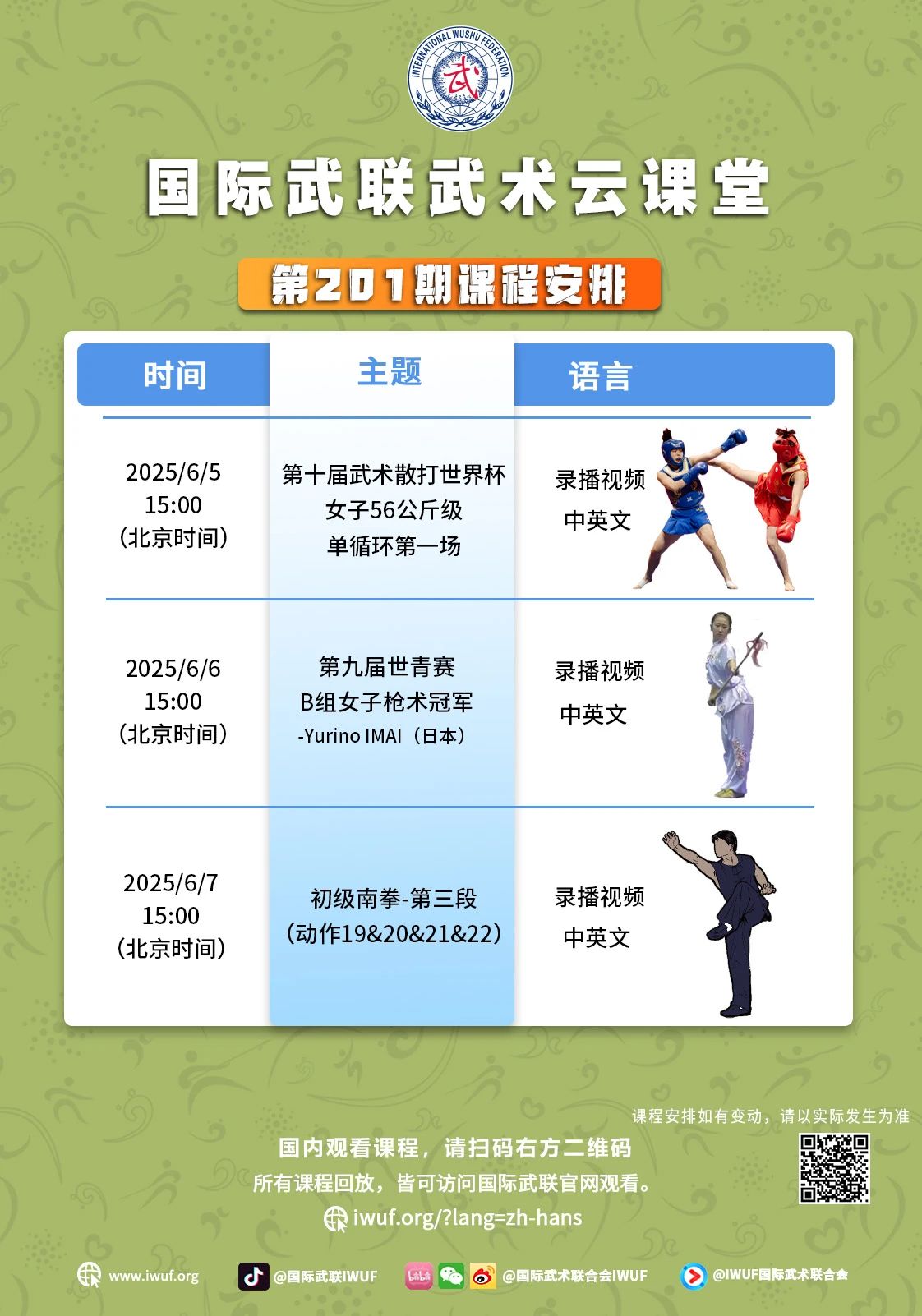 国际武联武术云课堂:第201期课表