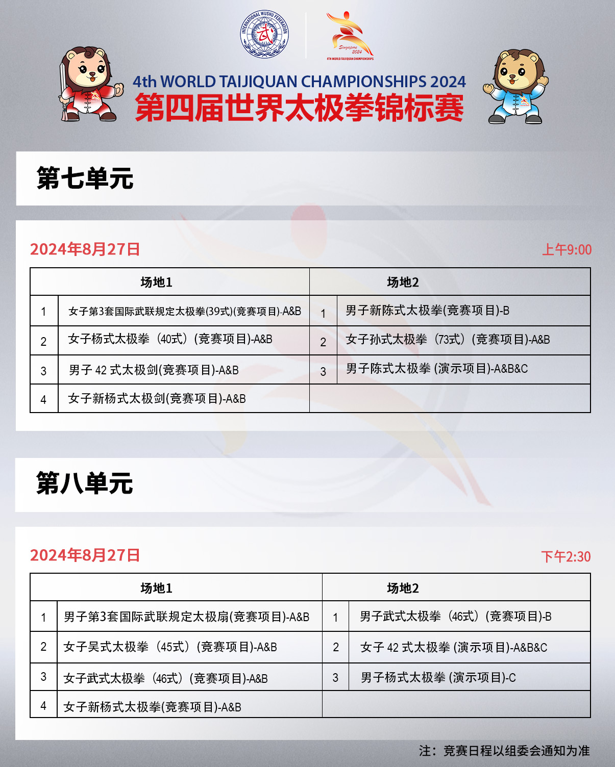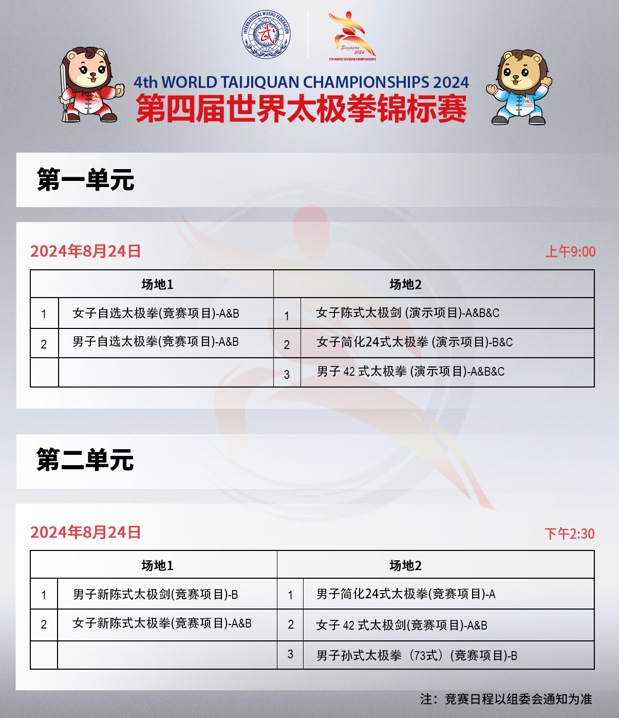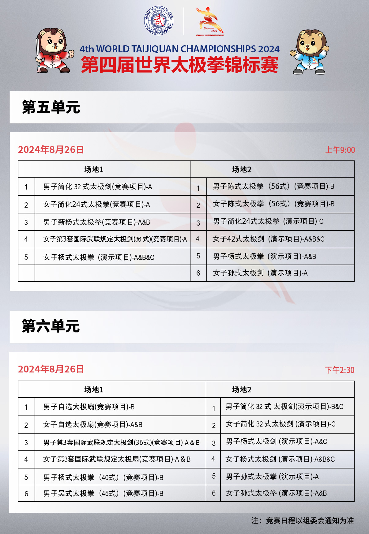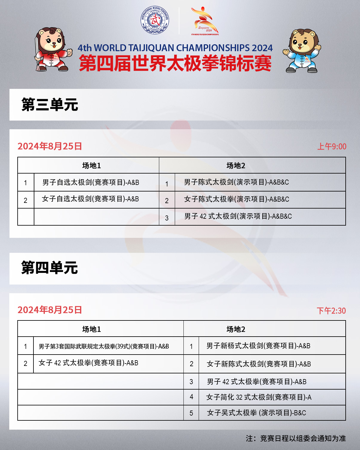第四届世界太极拳锦标赛竞赛日程